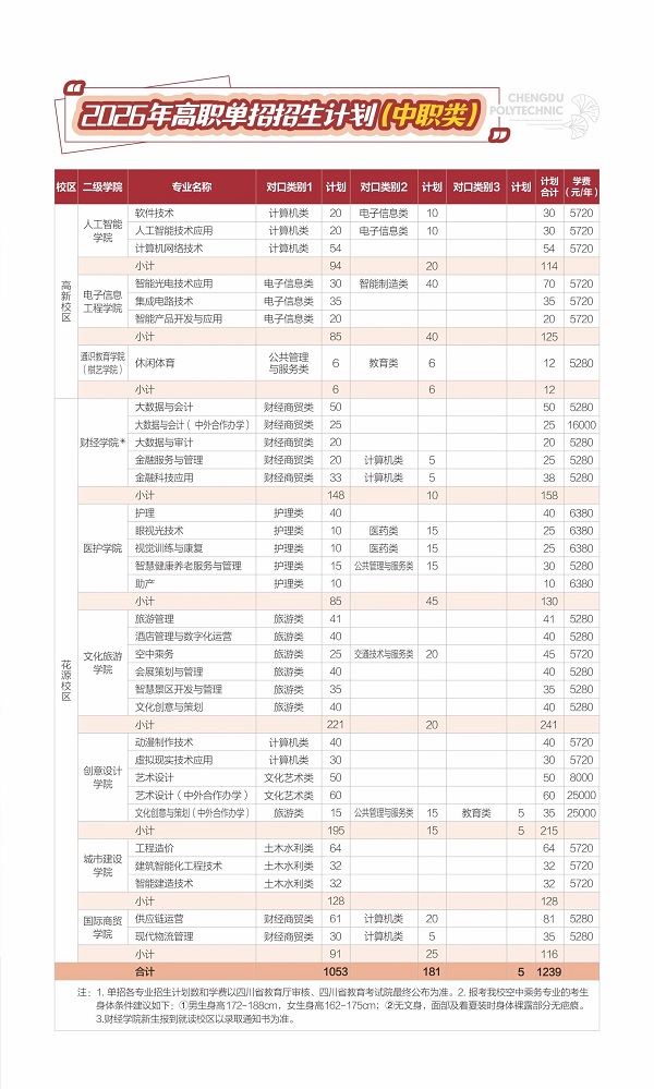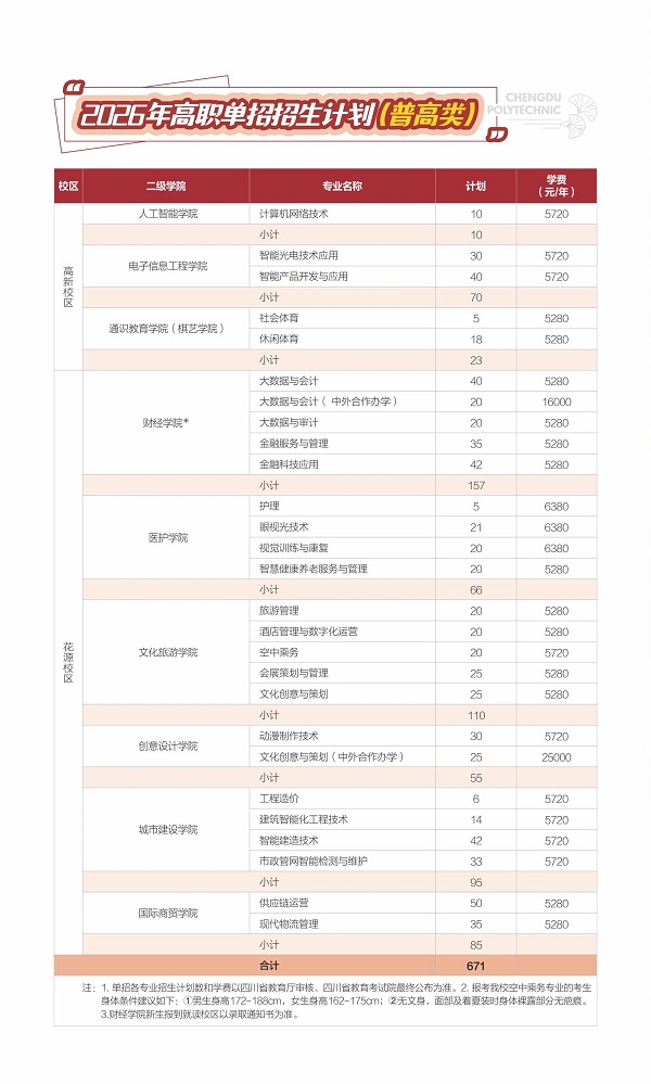 【双高院校】成都职业技术学院2026年高职单招招生专业计划(内附2025年分数线)