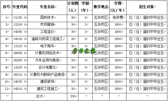 2019年三年制中职招生计划