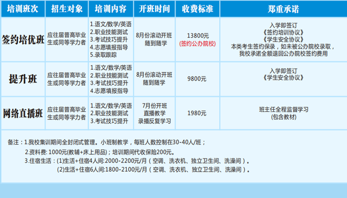 摘要:成都星空单招培训学校26年单招集训班于2025年8月23日开班,学校开设了签约培优班、提升班和网络直播班,入学即签订《签约培训协议》《学生安全协议》本类考生签约保录,如未被公办院校录取我校承诺全额退回公办院校签约费用。 报名热线:18980784372(周老师)!