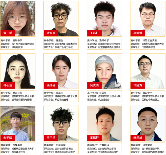 2025年,线下集训公办上线率91.63%,双高院校和行业重点院校占37.59%,其中四川省单招前10名1人(总分408分:文化229分/信通179分),四川电力学院录取3人,成都航空职业大学28人、四川铁道学院22人、四川邮电学院11人、四川农业科技学院19人、四川中医药高等专科学校10人、四川司法警官学院9人、四川工程职业大学16人.......双高院校和行业重点院校合计录取312人。
