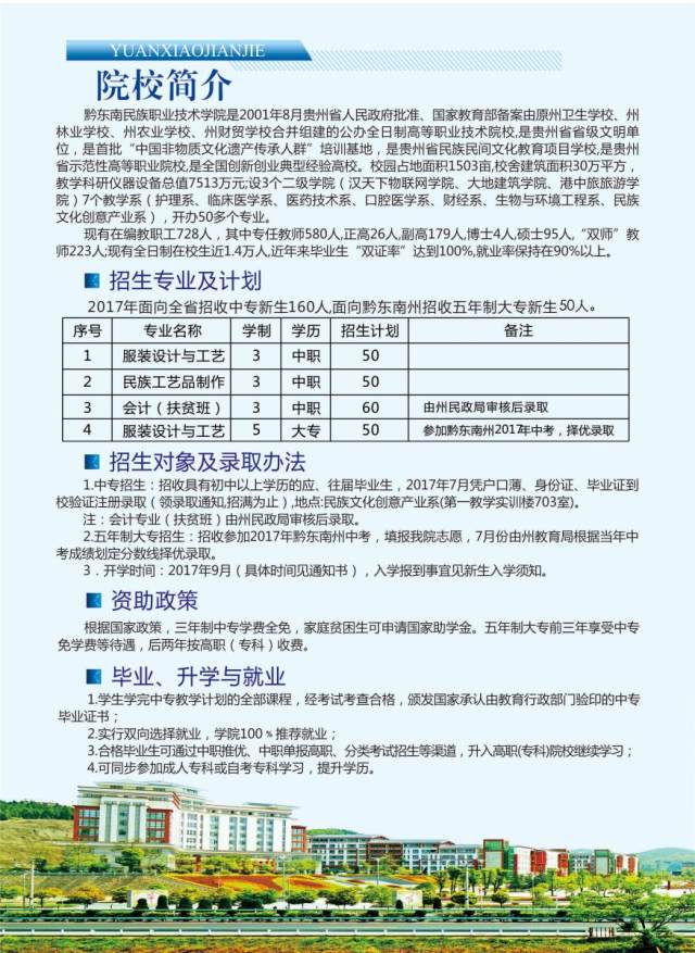 摘要:黔东南州民族中等职业技能校园是黔东南州属公办省级重点中等职业技能校园和省级重点技工校园,2010年被列为贵州省省级示范性中等职业校园项目建设校园,校园有贵州省人力资源和社