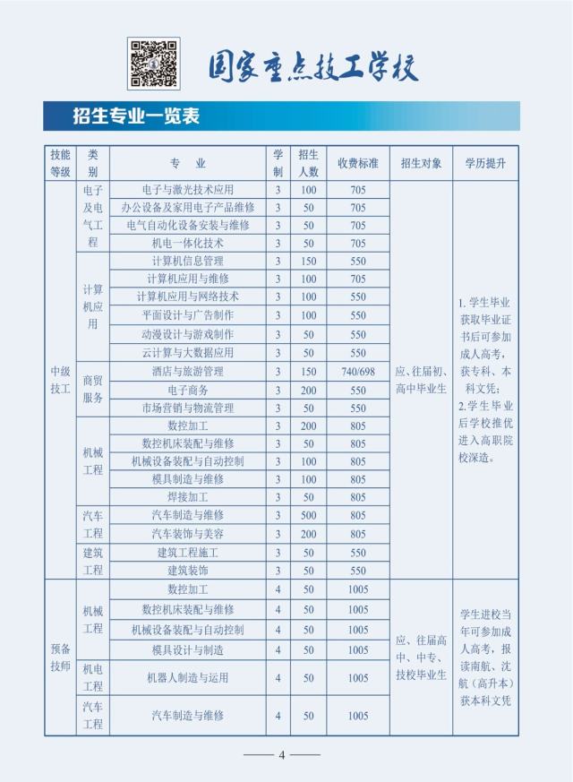 学院(校)实施“技术+学历”办学形式,确立了以培育技师、高档技工为主,统筹短期培训等多层次办学方向,与南昌航空大学、沈阳航空航天大学、贵州航空工业职工大学联合办学,培育成人专科、本科人才。设置技师、高档技工两个层次27个社会紧缺专业,均与联办大学专业相衔接。