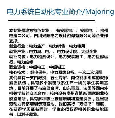 摘要:安顺职业技术学院电力系统自动化技术专业招生