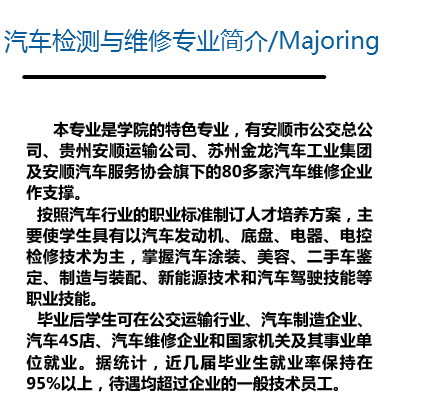摘要:安顺职业技术学院汽车检测与维修专业招生