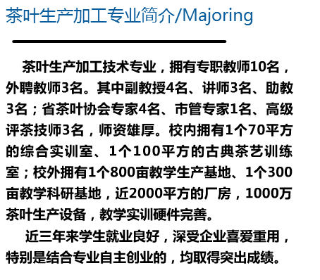 摘要:安顺职业技术学院茶叶生产加工技术专业招生