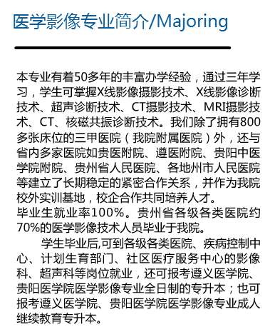摘要:安顺职业技术学院医学影像技术专业招生