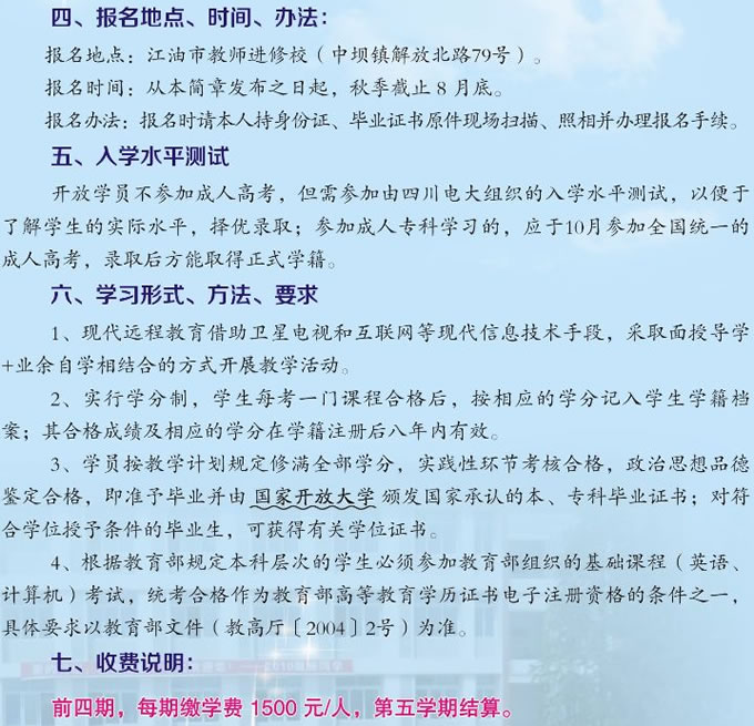2022年绵阳电大江油分校年秋本科、专科招生简章