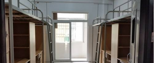 学生宿舍是标准的8人间。学校的宿舍条件还是可以的,整个房间比较宽敞,空气流通,有桌子椅子供学生使用,学校能够舒适的在寝室里面休息,休息好了才能有更高的学习效率。
